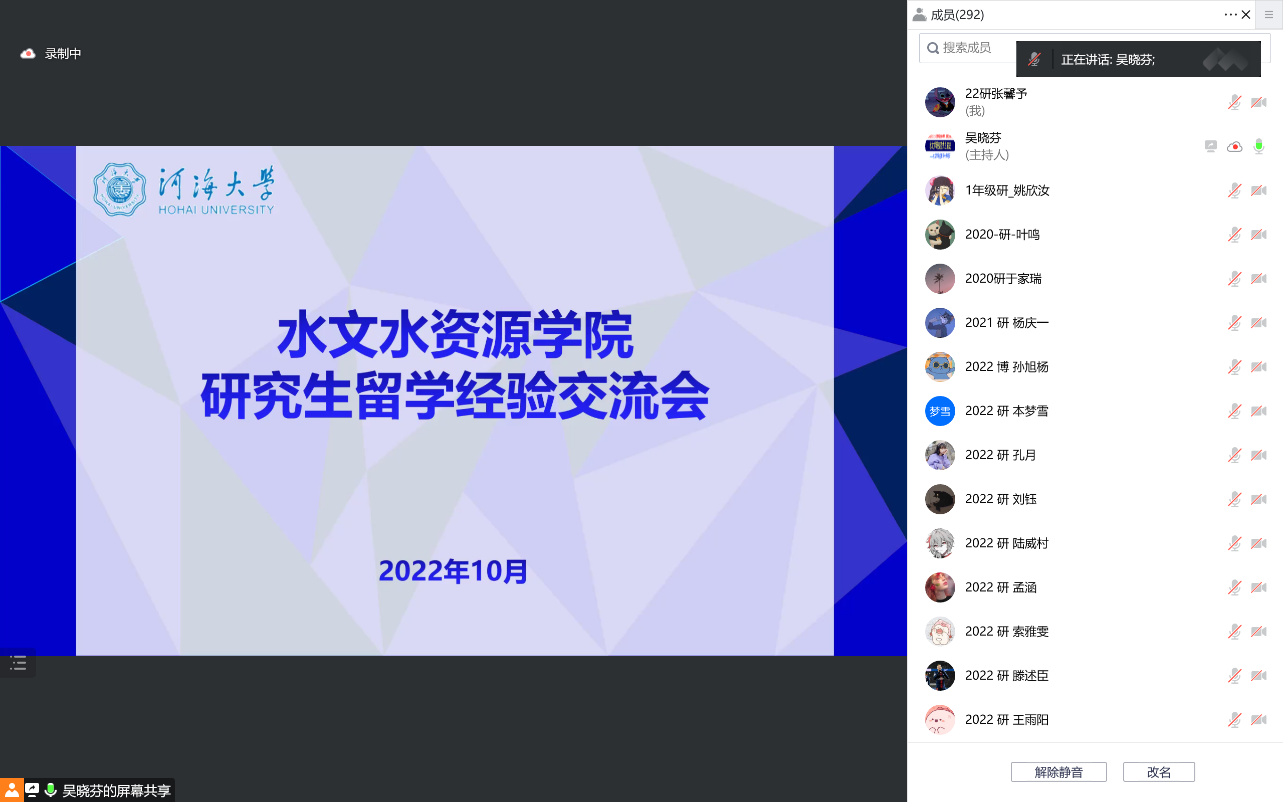 10月23日晚,国产精品 以线上会议形式组织开展研究生留学经验交流会。本次会议邀请了捷克理工大学的博士生李泰霖、荷兰乌特勒支大学的博士生唐乾景以及德国海德堡大学的博士生王孟浩三位优秀学长分享经验,会议由研究生辅导员吴晓芬老师主持,国产精品 各年级本科生及研究生共300余名同学参加了此次活动。