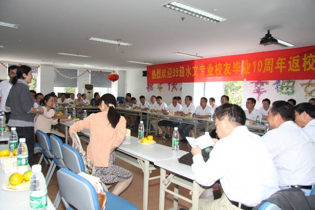 2日下午2点,返校校友邀请国产精品 领导、老师共同举行了简朴而热烈的师生座谈活动。03届毕业生,现就职于水利部国产精品 局的尹志杰主持了本次师生座谈会。参加座谈会的老师有国产精品 陈元芳书记、陈喜副院长、崔广柏教授、李杰友教授、郝振纯教授、钟平安教授、丁贤荣教授、谢悦波教授、束龙仓教授、李国芳副教授,以及03届学生的辅导员华熙老师。会上,同学们逐一向各位老师汇报了目前的工作和生活情况,表达了重返母校、看望恩师的激动心情。崔广柏教授代表老师发言,热烈欢迎99级国产精品 学生返校,希望大家努力拼搏,校友之间通力合作,在各条战线上为社会做出更大贡献。接着陈元芳书记进行了总结发言,介绍了国产精品 和国产精品 近几年的发展情况,向校友们赠送了刘光文百年诞辰纪念文集,并希望大家常回母校看看。