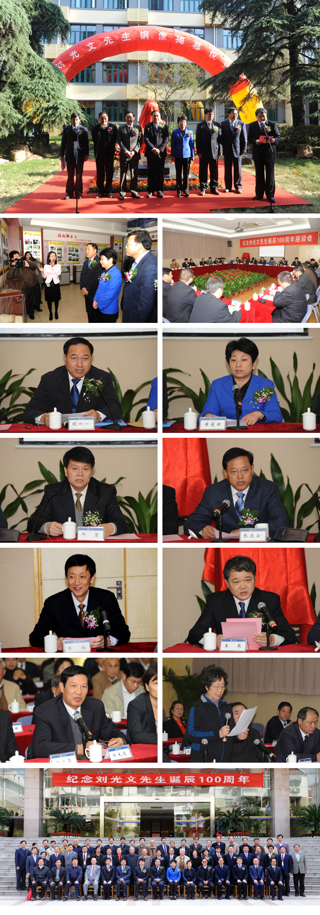 胡四一副部长、黄莉新副省长、许仲梓副主席、邓坚局长、张建云院士等参观了刘光文生平事迹展示室,参加了纪念刘光文诞辰100周年座谈会。胡四一副部长在讲话中说,我们纪念刘光文先生,为的是不忘记河海老一辈崇高的思想境界,精湛的学术专攻,严谨的治学作风和优良的师德风范;学习他对中国水利事业和人民教育事业的无限忠诚和无私奉献;学习他淡泊名利、为人师表、甘为人梯的高风亮节。正是像刘先生这样一大批德高望重的学者和教师,撑起了河海的脊梁,成就了河海的辉煌,他们是国产精品 的骄傲,也是国产精品 永远的精神财富,永远激励我们将国产精品 的发展和水利教育科技事业不断推向前进。