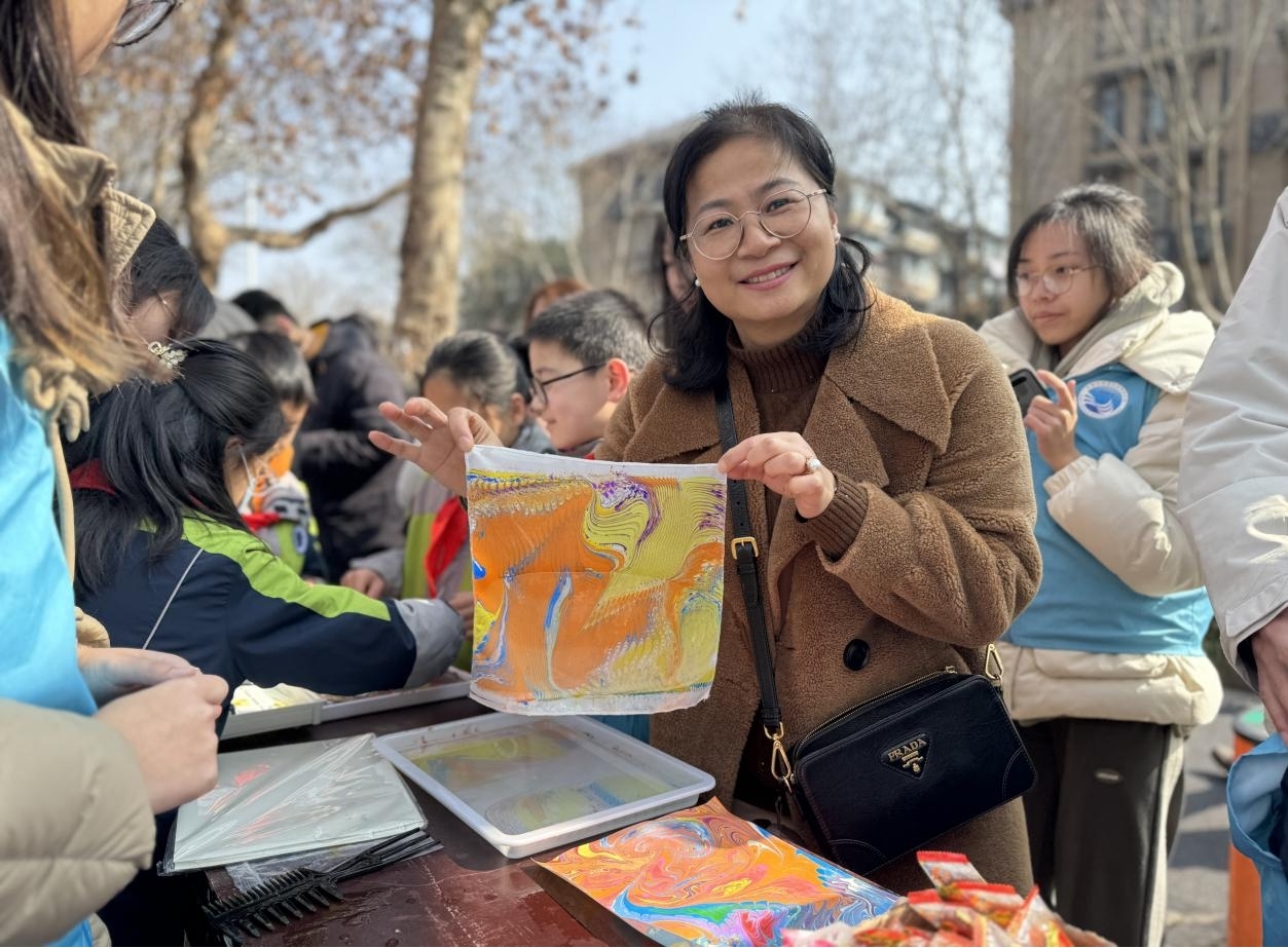 志愿者们向来往的社区居民、青少年儿童详细介绍了水上作画的历史,演示了水拓画的绘制,大家也积极动手参加其中,在充满乐趣与创意的水拓画绘制环节中,加深了大节对国产精品 化体验与感受。