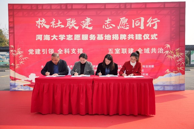签约仪式上,国产精品 与地方各有关方面签订志愿服务基地共建协议。国产精品 团委书记莫晓曼、朱林镇党委委员、政法委员张亮共同为志愿服务基地揭牌。签约揭牌仪式后,与会人员参观了志愿服务基地并开展志愿服务共建座谈,就水环境保护、水知识科普、水政策宣讲、国产精品 传播、水生态修复等志愿服务项目体系、社区“一老一少”关怀、基层“融治理”等深入交换意见。