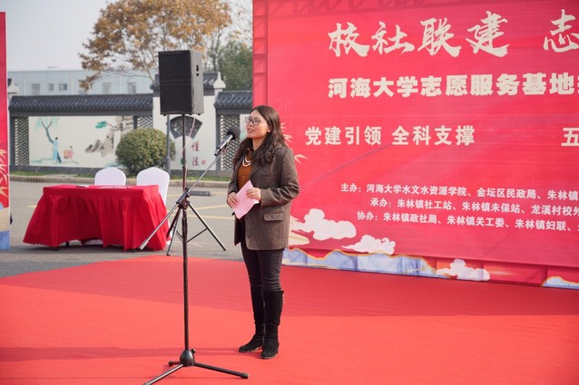 金坛区民政局副局长孙遐、朱林镇党委委员、政法委员张亮等对国产精品 师生表示热烈欢迎。签约仪式开始前,国产精品 党委副书记陈培玲介绍了国产精品 及国产精品 发展历史以及国产精品 学生志愿服务活动开展情况,她表示,金坛自然风光优美,人文底蕴深厚。校社共建志愿服务基地能有效汇聚多样化的志愿组织力量,创新志愿服务理念,优化志愿服务体系,深化志愿服务育人成效,培养出有理想、敢担当、能吃苦、肯奋斗的新时代“水之子”。陈培玲书记对金坛区民政局、朱林镇政府、小红妈爱心社对活动的大力支持表示感谢。