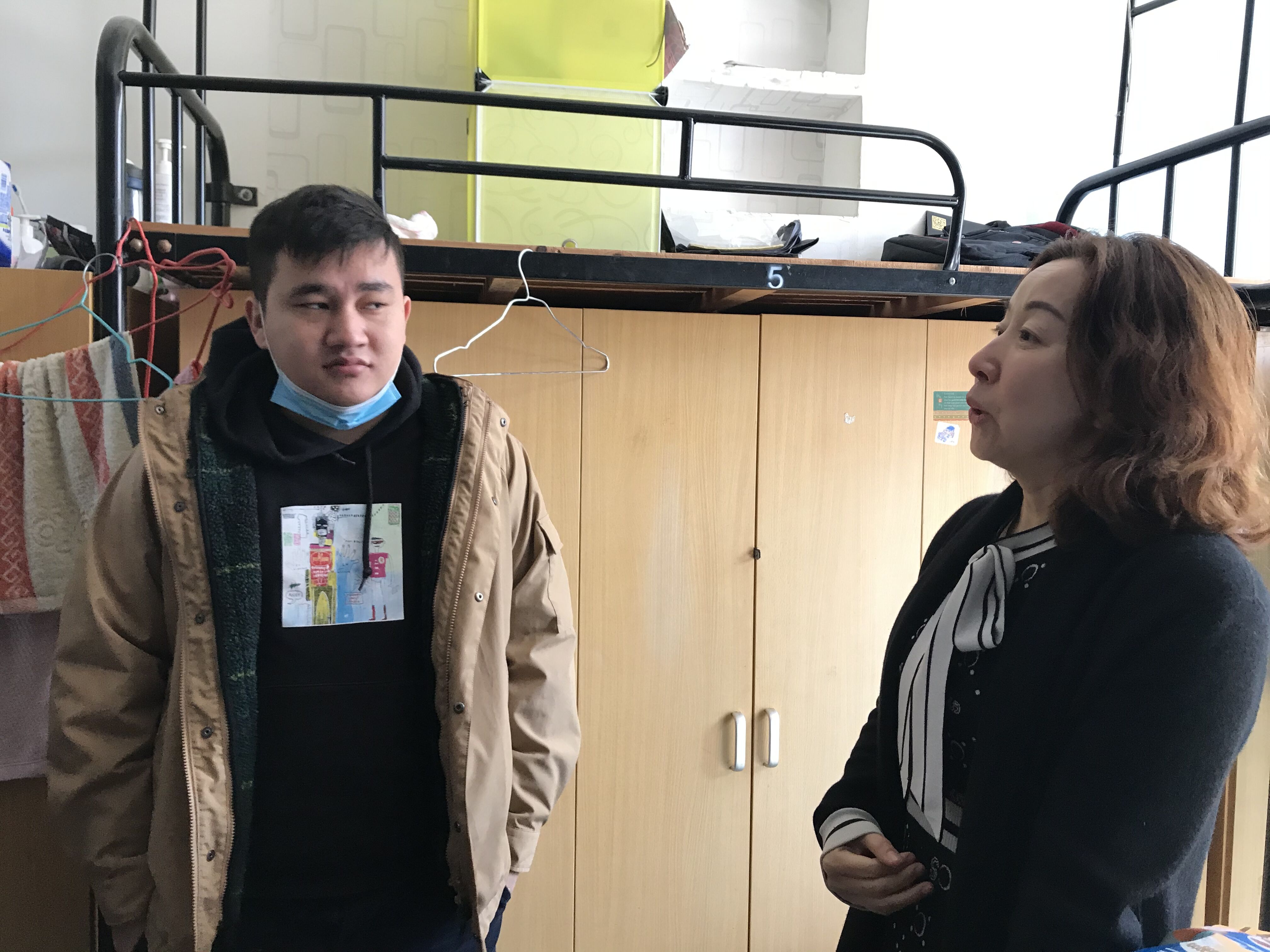 随后,院领导与2017级辅导员董叶斓、2018级辅导员崔玮嵛来到学生宿舍看望在校过年的本科生刘师源、帕尔哈提·吾斯曼、艾力扎提·马合木提江、李珊珊和马跃宁。孔书记向同学们表达了国产精品 领导的关心和问候,叮嘱同学们务必做好个人防护、平时适当增加运动频率,提高身体素质。陈书记也详细了解、询问了大家寒假期间的生活、学习安排,希望同学们每天多与家人联系,虽然是云过年,但依然是个团圆年。