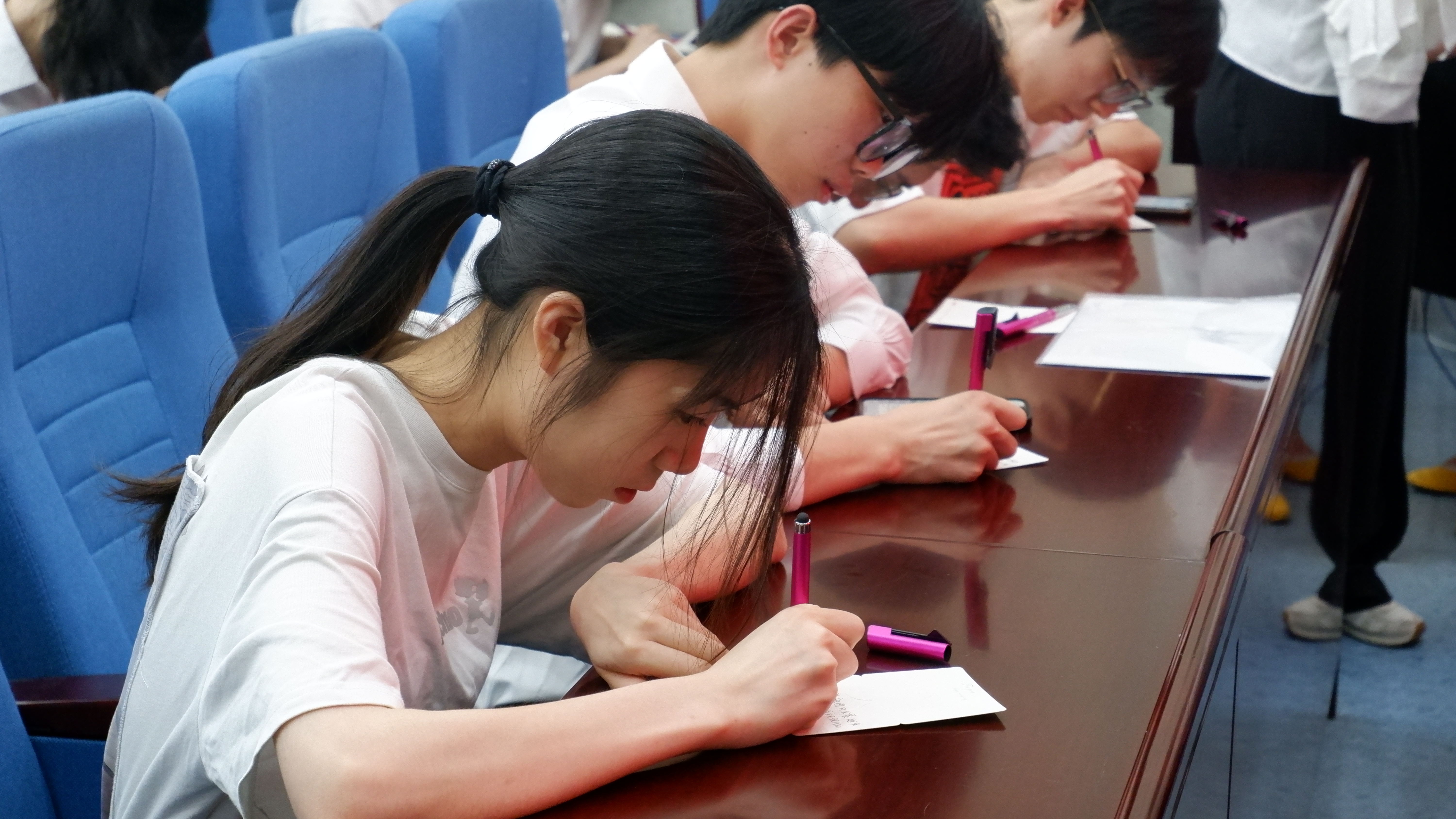 宣誓仪式后,预备党员集体观看2023年高校党组织示范微党课第五期展播,写下“畅想 2035”“眺望 2050”心愿卡。青年学生纷纷表示要牢记习近平总书记的重要嘱托,踔厉奋发、奋勇争先,进一步明晰“请党放心,强国有我”的实现路径和人生方向,用实际行动回答“民族复兴,青年何为”。
