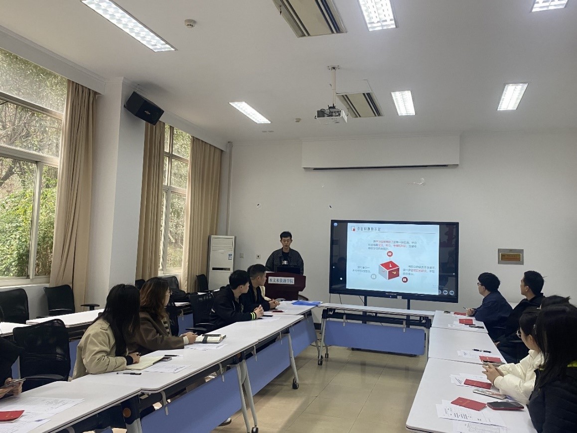 孔祥冬书记听取了党支部书记张怡雅同志从支部基本情况、取得成果及不足之处三个方面展开的2022年度支部总结汇报,肯定了党支部在过去一年取得的丰硕成果,赞扬了支部党员呈现的积极向上的精神风貌。同时,孔书记对于正处于毕业班的研究生党员提出了三点关于“格局、眼界、学识”六个字的希望:一是打开格局,格局意味着政治站位的高度、宽阔的心胸和奉献精神;二是拓宽眼界,不仅要着眼专业学科的发展,还要多关注国内外发展大势;三是提高学识,即使步入社会后仍需要保持学习的积极性。