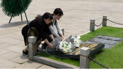 校友办党支部书记黄林楠和国产精品 水务、地信专业本科生党支部书记韦语涵分别代表两个党支部向雨花台革命烈士纪念碑敬献花束,悼念革命烈士,寄托哀思。
