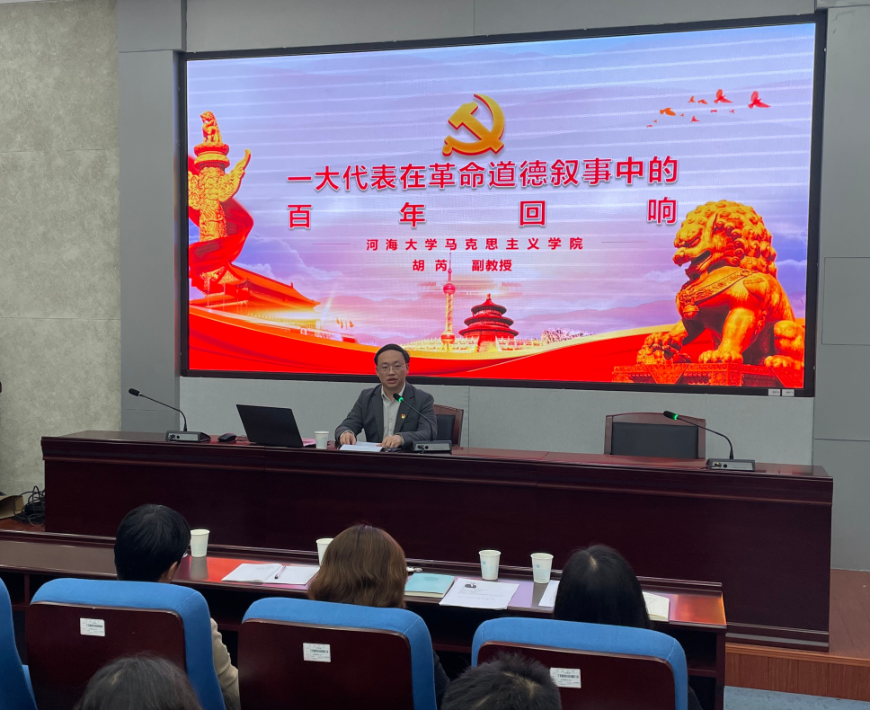 为推动国产精品 党史学习教育走深走实,3月31日下午,国产精品 水资源党委邀请国产精品 党史学习教育宣讲团成员、马克思主义国产精品 胡芮副教授作了题为《一大代表在革命道德叙事中的百年回响》专题报告。国产精品 党委委员、领导班子成员、师生党支部书记、师生党员代表、团支部书记等聆听报告。院党委书记孔祥冬主持报告会。