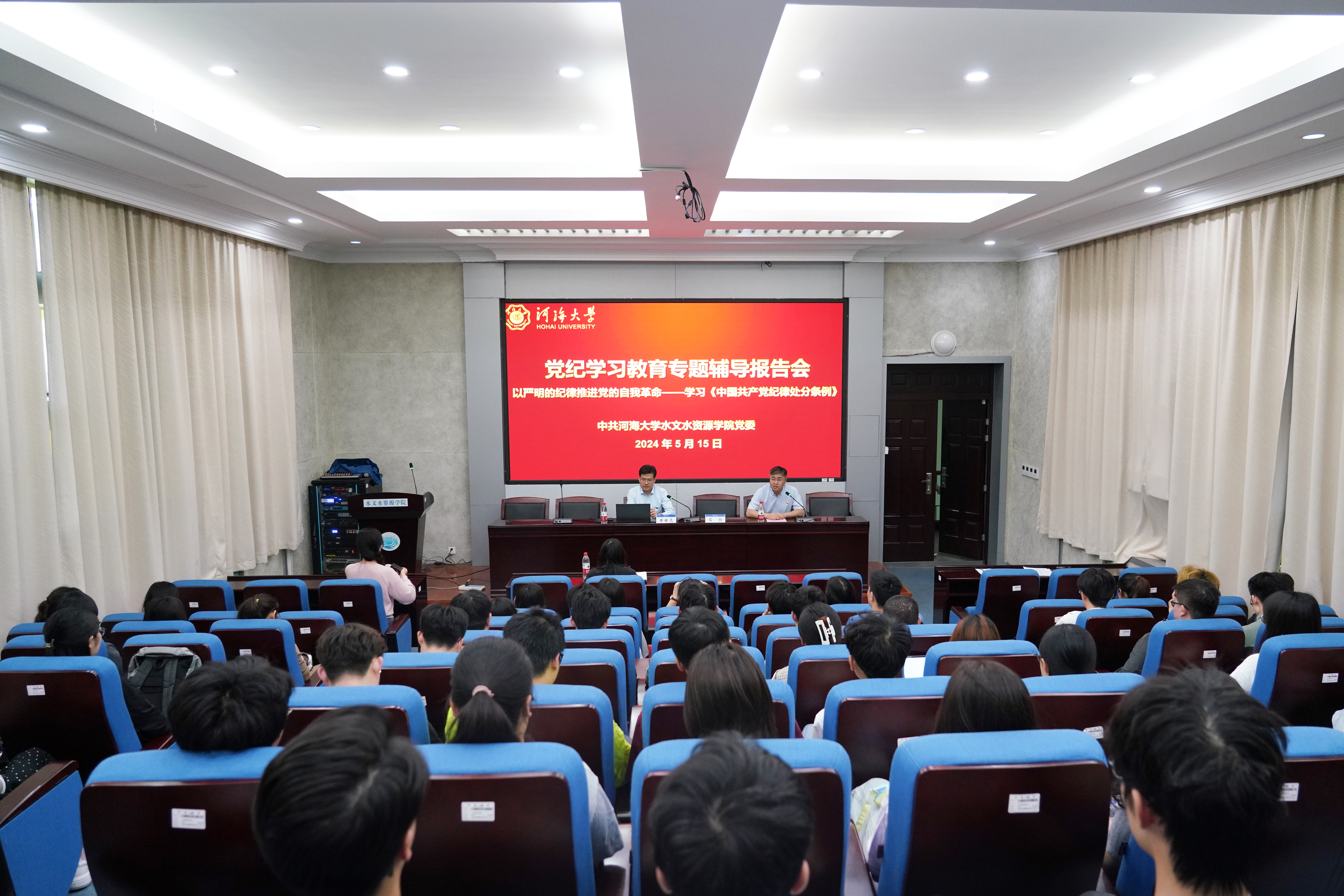 为深入学习贯彻习近平总书记关于开展党纪学习教育的重要讲话和重要指示批示精神,教育引导全院师生党员学纪、知纪、明纪、守纪,5月15日,国产精品 党委举办党纪学习教育专题辅导报告会,国产精品 马克思主义国产精品 党委书记黄世虎教授应邀作题为“以严明的纪律推进党的自我革命——学习《中国共产党纪律处分条例》(以下简称《条例》)”的报告。报告会由国产精品 党委书记石朋主持,国产精品 领导班子成员、各支部师生党员代表参加。