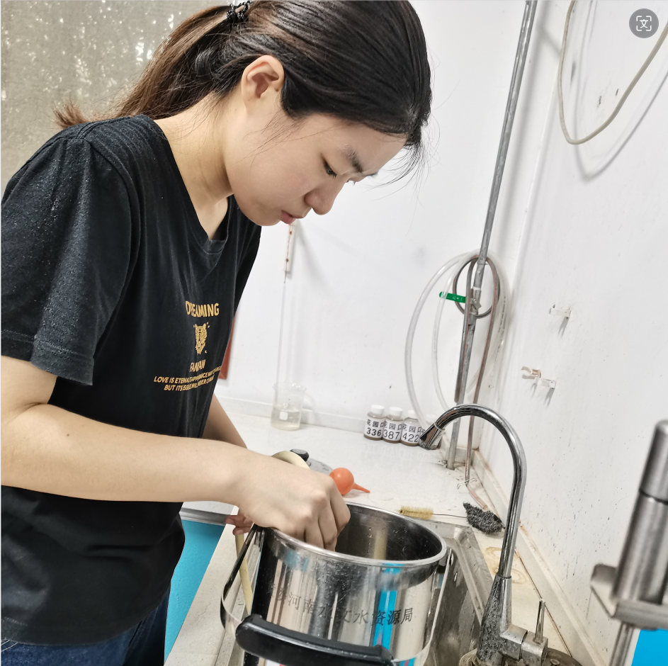 侯添甜在花园口国产精品 站进行沙样处理工作
