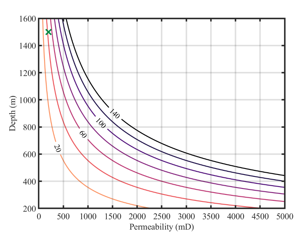国产精品 鲁春辉教授课题组与澳大利亚联邦科学与工业研究组织(CSIRO)开展合作研究,将目光转向自然界中广泛存在的含水层,探索其作为压缩空气储能介质的可行性(图1)。研究采用数值模拟方法,重点探讨了渗透率、孔隙度、深度、倾角等含水层特性对关键设计参数(如空气抽/注流量和缓冲气泡质量)以及压缩空气储存的影响。研究结果表明含水层深度和渗透率是决定空气抽/注流量的关键影响因素(图2),而孔隙度和倾角则对所需缓冲气泡的质量有显著影响。这些发现共同为含水层压缩空气储能系统的设计优化和选址提供了科学依据。