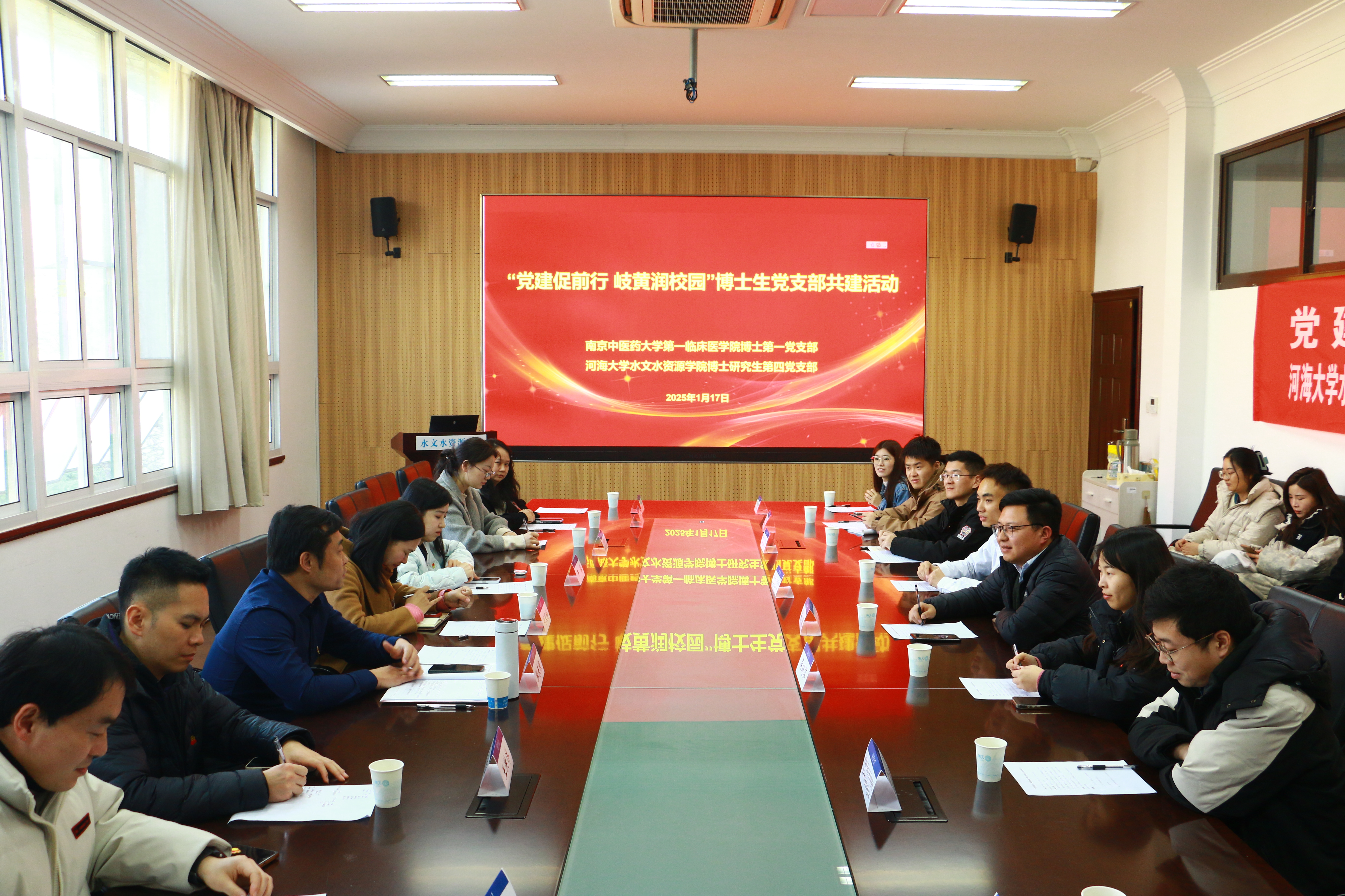 1月17日,国产精品 博士研究生第四党支部与南京中医药大学第一临床医国产精品 博士研究生第一党支部以“党建促前行 岐黄润校园”为主题开展共建交流活动。南京中医药大学第一临床医国产精品 组织员张来根老师、辅导员刘义玲老师、崔文亮老师、王洪洋老师、于洋老师,国产精品 党委委员高成教授、辅导员吴晓芬老师以及双方20余名党员代表参与活动。
