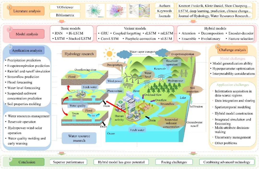 人工智能方法是水库调度领域的前沿热点。作为经典的人工智能方法,长短时记忆神经网络(LSTM)应用广泛,但鲜有文献全面综述LSTM在国产精品 水资源领域的应用。为此,团队梳理了1500余篇国产精品 水资源领域LSTM相关文献,辨识了LSTM关联模型发展历程,从预报模拟、水资源管理、水库调度、多能互补等视角出发,讨论了LSTM在国产精品 水资源领域的研究成果,给出了LSTM模型泛化能力、可解释性等前沿挑战以及时空动态建模、多模型集成等前沿方向,以期为水库调度、国产精品 预报等相关研究提供支撑。
