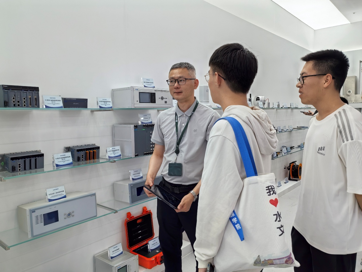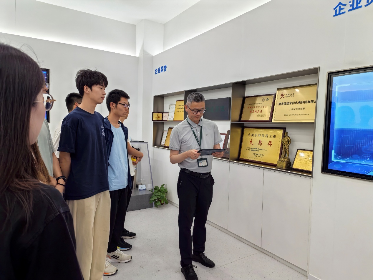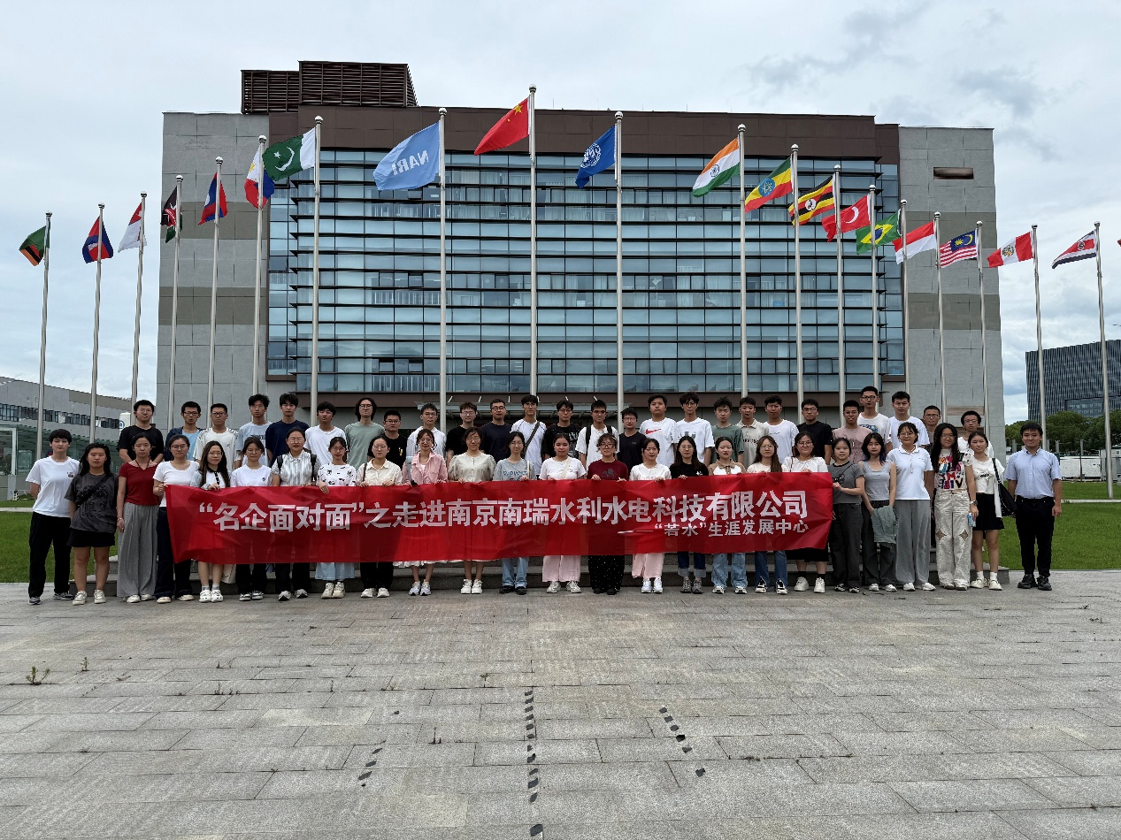 在南瑞集团,同学们走进企业展厅和核心实验室,“沉浸式”体验了企业精神文化,参观学习了企业在水电自动化与智能化、继电保护、能源互联网等领域的创新成果和技术优势。交流环节中,南瑞集团技术专家围绕智慧水利、智慧气象、数字孪生流域等领域的国家战略需求,为同学们深入浅出地讲解了信息技术与国产精品 学及水资源、城市水务等学科的交叉融合现状与应用前景。在自由提问环节,同学们积极互动,就专业选择、形势政策、面试细节等问题展开深入交流。