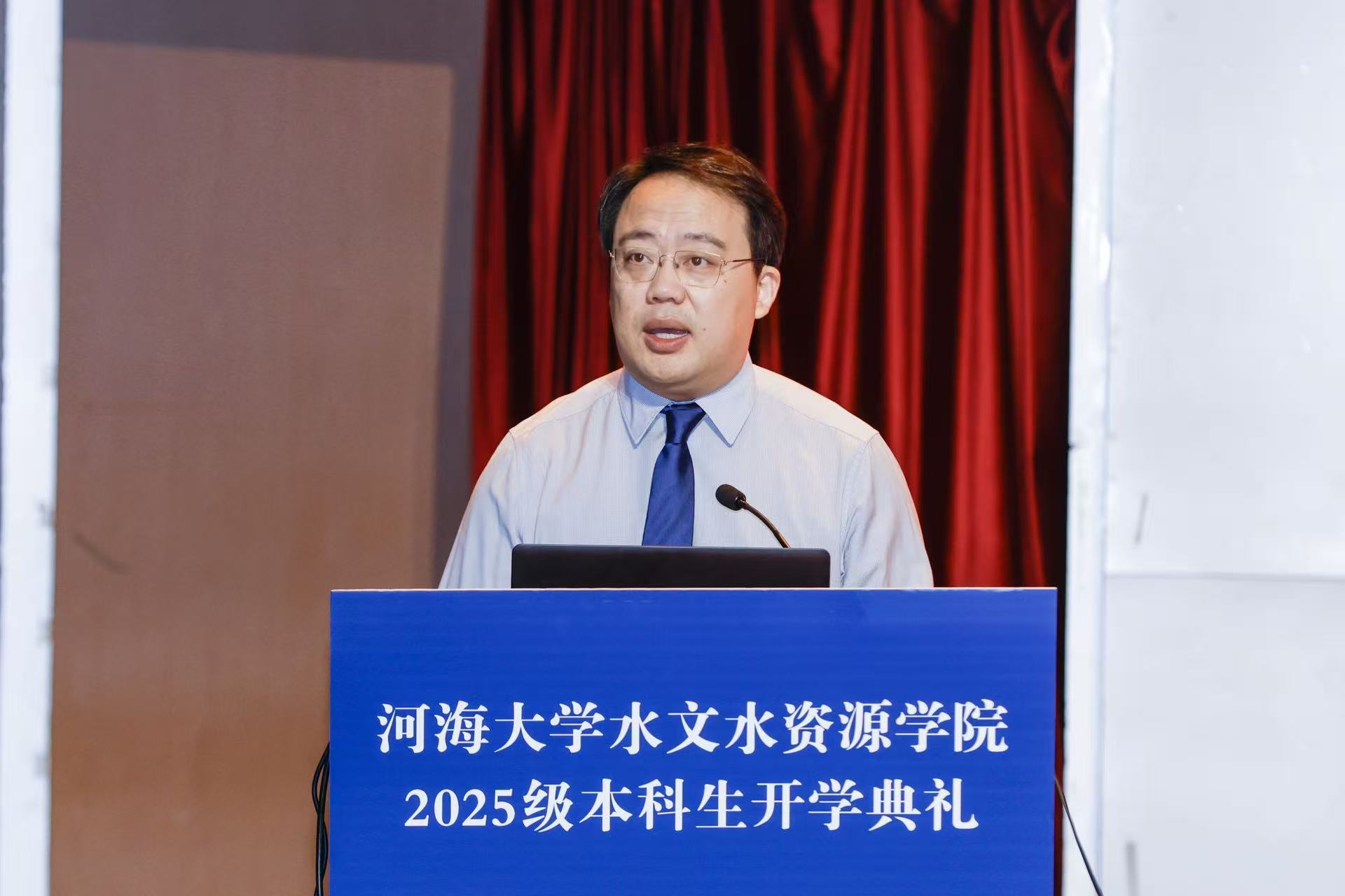 鲁院长向新生提四点希望:一是心怀“国之大者”,融个人理想于国家发展,传承校训做有担当的“水之子”;二是勤学善思,适应大学学习,夯实基础、精通专业,注重理论与实践结合;三是格物致知,保持对知识的敬畏与好奇,探索水科学规律;四是全面发展,参与各类活动,培养能力,保持乐观心态与强健体魄。