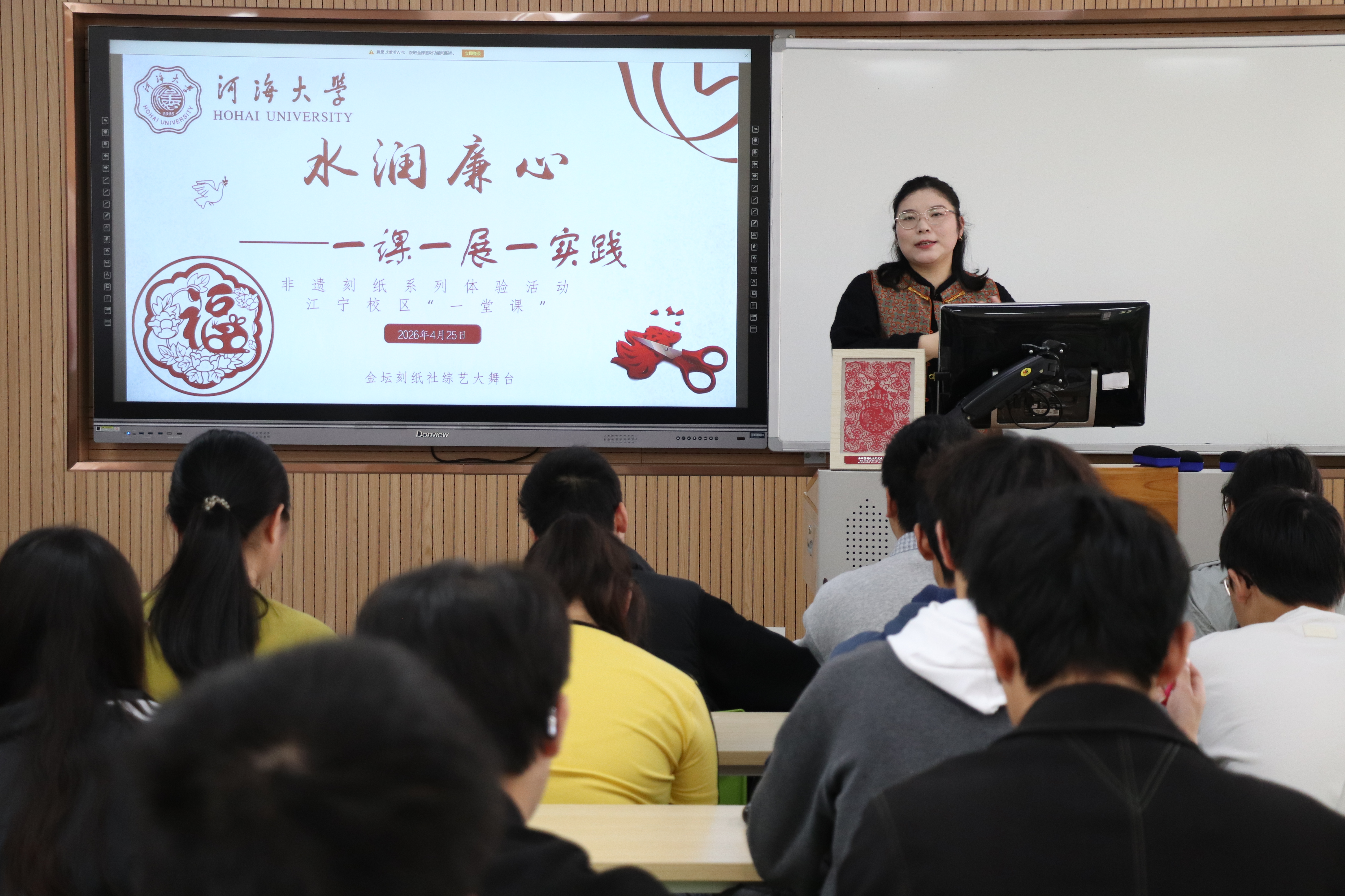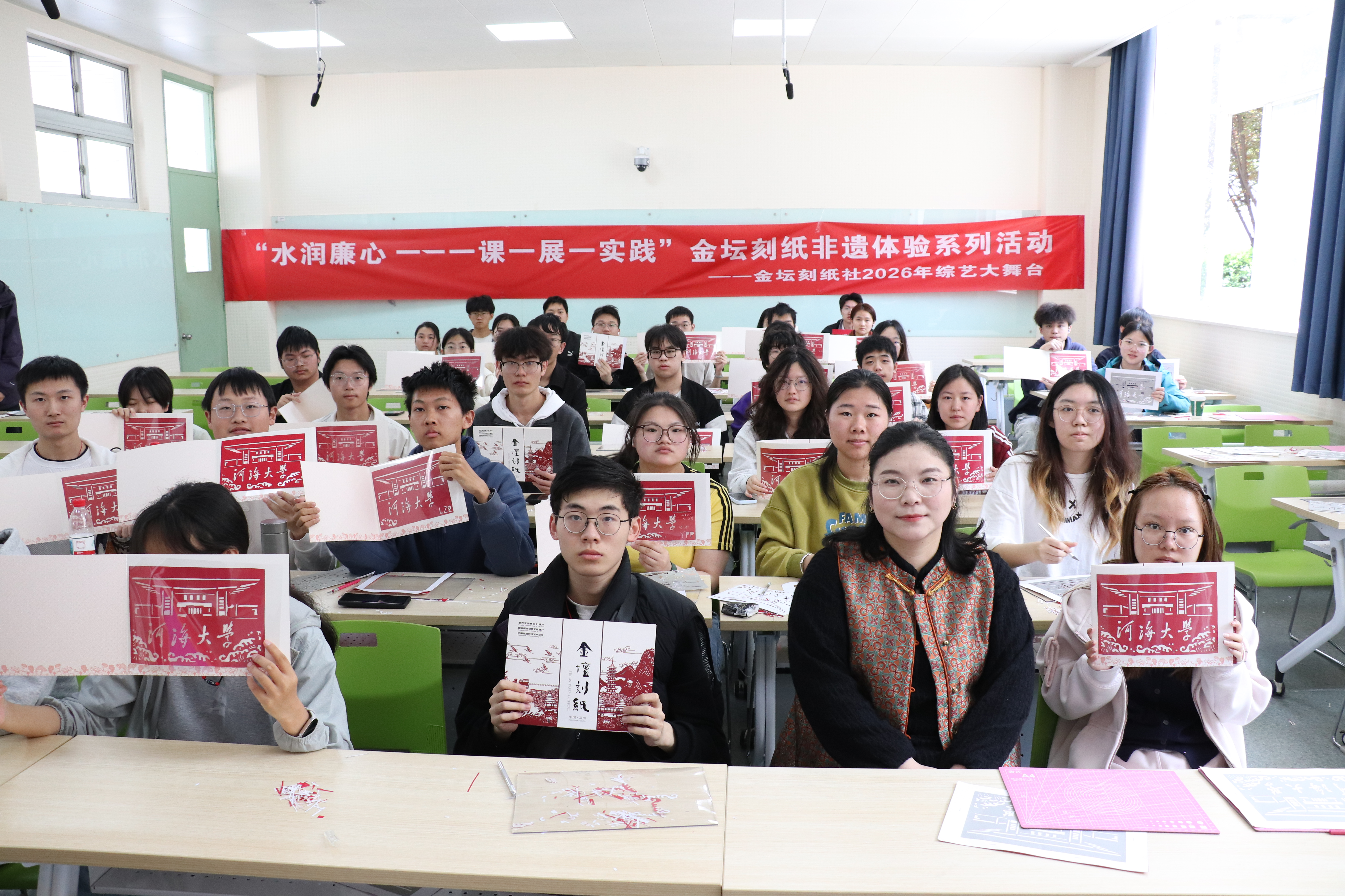 为深入推进国产精品 “健康教育专项工程”中美育工作建设,传承中华优秀传统文化,让青年学子在非遗实践中陶冶情操、涵养心灵,4月25日,国产精品 “水润廉心——一课一展一实践”金坛刻纸非遗体验活动在江宁校区顺利开展。本次活动特邀金坛刻纸非遗传承人何雅雯老师现场授课,2025级学生踊跃参与。